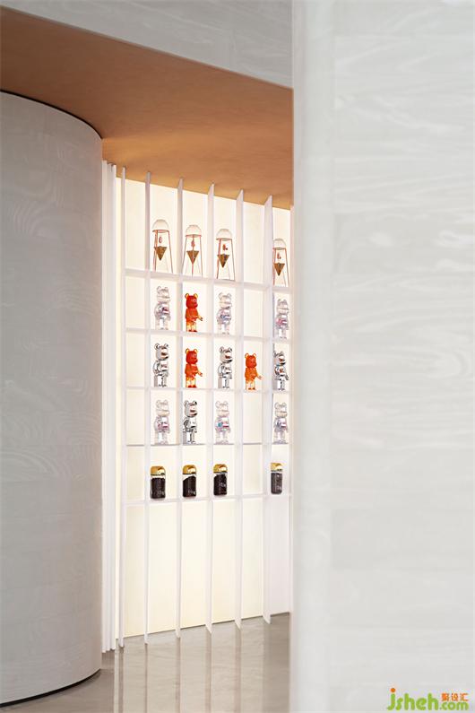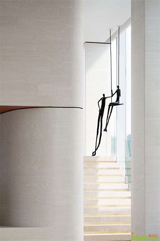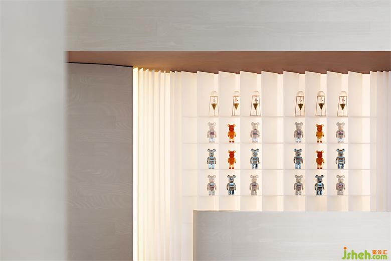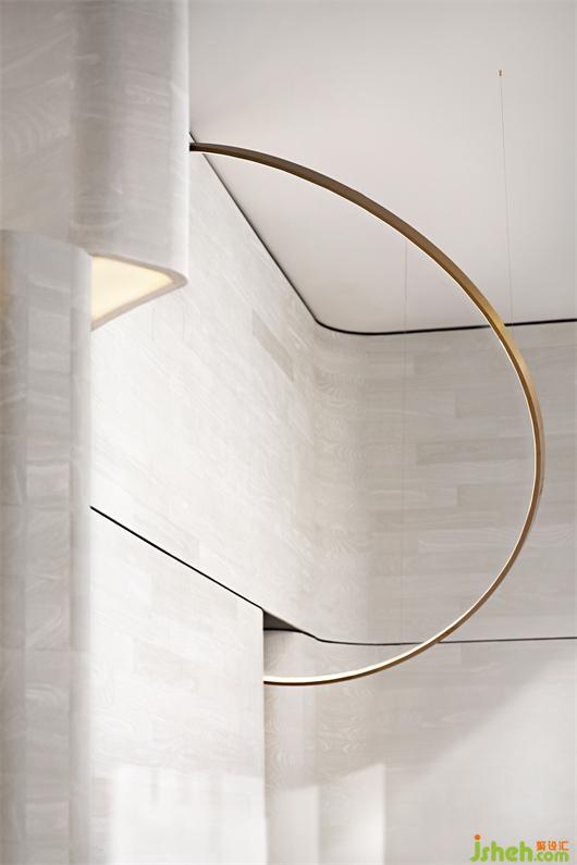 我們試圖保留空間材質(zhì)與色彩的純粹性,只采用色調(diào)柔和相近的材質(zhì),塑造墻地面無邊、連貫的整體感,注重空間形體的豐富度和包裹感帶給人的漫無邊際的想象。