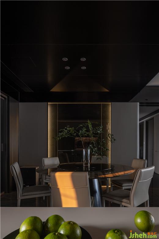 大宅設(shè)計(jì)色彩大膽選用大塊面黑白灰組合,且以深灰(黑)為公共場(chǎng)域主色調(diào),同時(shí)與自然紋理的藝術(shù)涂料和木紋材料相互融合、對(duì)比,為空間增添活力,無一處細(xì)節(jié)不體現(xiàn)業(yè)主的精致品味。
