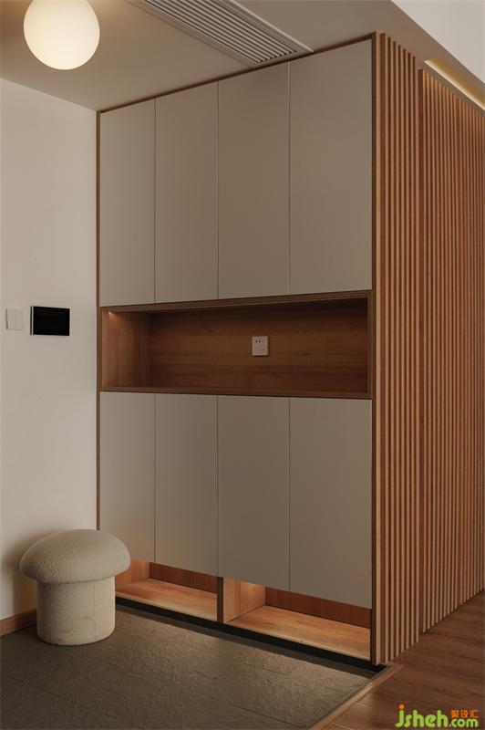 玄關(guān)空間是家居空間中最能凸顯家裝品味的地方之一,它所營造的視覺感直接影響人的第一印象,日式的下沉式玄關(guān)區(qū)開玄關(guān)和客廳的部分,有個小臺階,邁入家里的時候有儀式感,也從心理上回家的暗示更明顯,心理更放松。同時室內(nèi)多用木地板鋪貼,從戶外帶回來的泥塵,再玄關(guān)處便可打理,不易帶到室內(nèi)。