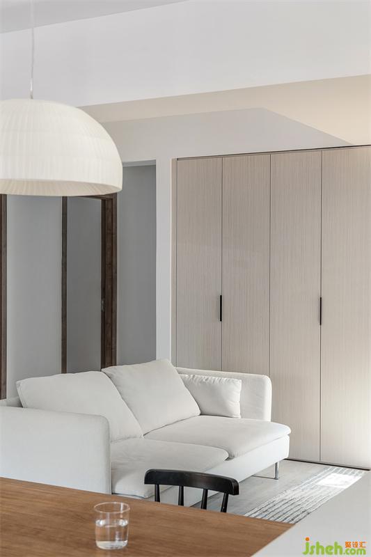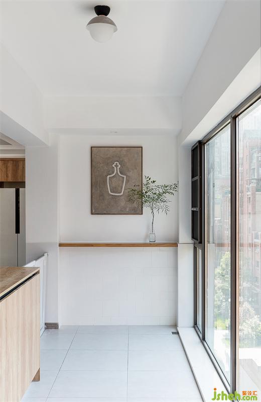入戶即是陽臺,設計一整面落地窗,通透明亮,一進屋便有豁然開朗之感,同時也是家里的萌寵長待的區(qū)域。