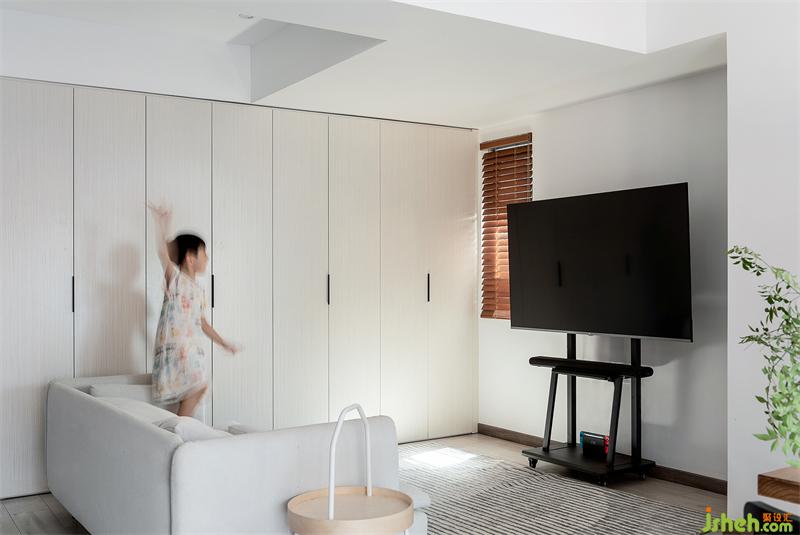客廳也是一家人的游樂園,只放置活動的電視支架,閑暇之余,可感受大屏電視帶來的視覺體驗,潮玩游戲機為空間增加了趣味感。