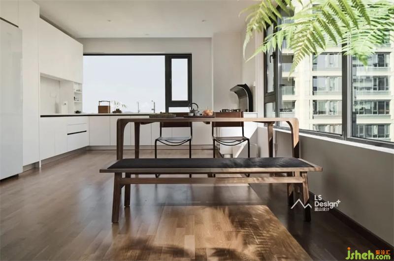 「無客廳」設(shè)計(jì)是周子鑒根據(jù)空間主人的生活狀態(tài)而定制的,晚飯后一家人共同習(xí)字、彈琴是唯一的娛樂項(xiàng)目,因此客廳的一臺古箏已足夠支撐整個(gè)空間的核心。