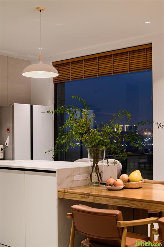 二層主要被規(guī)劃為超大餐廚空間,開(kāi)放式廚房和島臺(tái)聯(lián)接的大餐桌,可滿足“大型”聚會(huì)需求。別墅設(shè)計(jì)及(入住后曾一次容納了9個(gè)家庭的溫暖聚會(huì))這里擁有最好的南向景觀面,遠(yuǎn)山與江景在時(shí)間變化中變換成一幅幅自然畫卷,不需要做什么,只需盡情感受時(shí)光饋贈(zèng)的美麗。