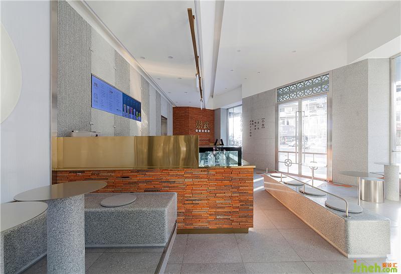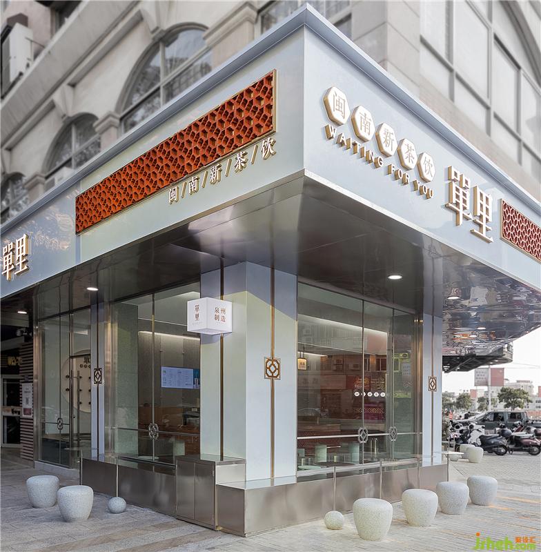 單里(在閩語語中是“等你”的意思)立足閩南本土,為閩南新式茶飲的新品牌。泉州餐飲設(shè)計室內(nèi)紅磚墻面上精致復(fù)古的黃銅字——“崇武”二字,點明了空間所在地為閩南崇武小鎮(zhèn)。