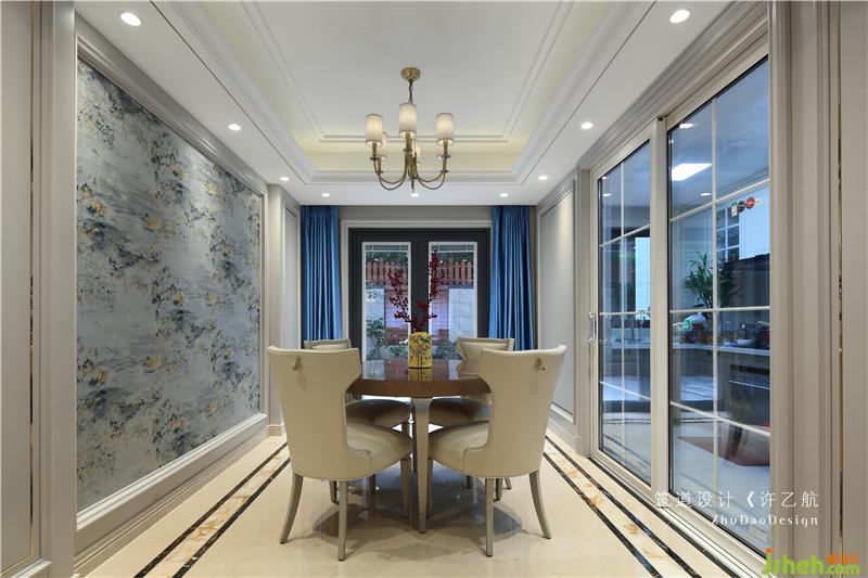 一樓整體格局基本不變,客餐廳整體以美式風格為主,色調(diào)采用藍色點綴,使空間更加沉穩(wěn),灰色的硬包和沙發(fā)與藍色的抱枕顏色明亮卻不刺眼,同時更拉升了空間的層次感?。主臥整體采用素色,均衡感、色彩、節(jié)奏、工藝......均契合設計中共同認知的形式美法則,在調(diào)和對比、多樣統(tǒng)一中,營造出和諧純凈、怡然清幽的氛圍。背景線條與純色窗簾元素,體現(xiàn)設計的和諧美。