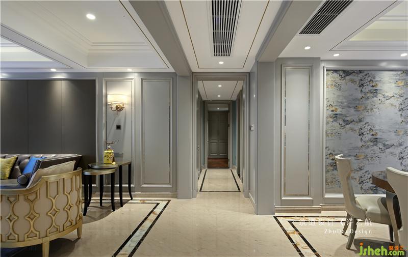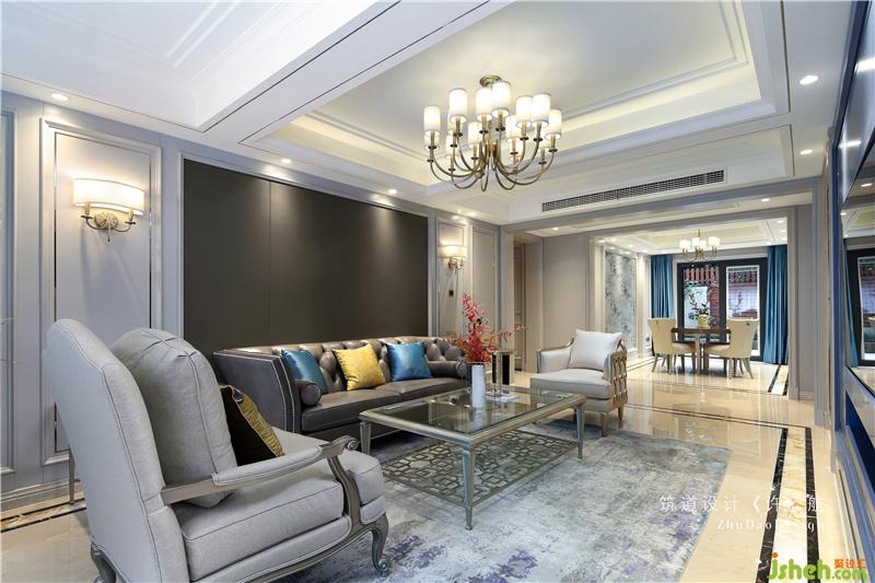 本案采用美式與現(xiàn)代混搭風格,一樓采用美式,地下室為現(xiàn)代。