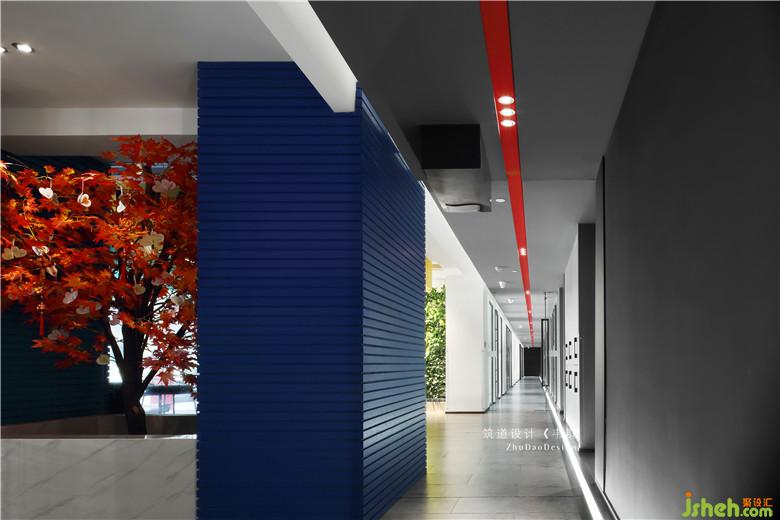 本空間整體呈細長的橫長方型,設計師運用了中心聚集的動線設計手法,將中部入口處定義為公共活動區(qū),其余空間以走廊連接,左右分別為品牌的展示區(qū)以及各部門辦公區(qū)。