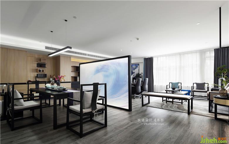 進(jìn)門后,立刻能感受到一種熱情洋溢的空間氛圍。公共活動區(qū)的色彩搭配上多用了大膽的對比色,每個空間畫面中都有一組高明度色彩進(jìn)行碰撞,視覺感受上充滿活力與動感。這樣的色彩搭配更加強(qiáng)化了公共區(qū)的趣味性,讓人們更愿意在此處聚集,相互交談,產(chǎn)生互動。公共區(qū)又細(xì)分為會客區(qū),茶水區(qū)和健身娛樂區(qū)。這三個空間用網(wǎng)狀造型鐵藝隔斷分割,既能區(qū)分各個區(qū)域的獨立功能,又保持了公共區(qū)整體的聯(lián)系和空間的通透性。