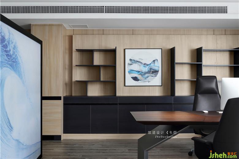 走廊的設(shè)計也頗具獨特性。在白色墻面和黑色頂面的基礎(chǔ)上加上一抹紅色直線,整個走廊就變得活躍了起來,同時搭配地面上的線性燈,在滿足視覺審美的同時又兼具動線引導(dǎo)的功能。在走廊末端墻面設(shè)置的紅色幾何造型壁燈既是對頂面色彩的呼應(yīng),同時作為一個視覺中心,在人們行走時產(chǎn)生探索的心理,從而降低長距離走動時的疲憊感。
