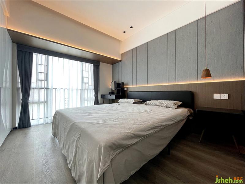 ? 將主衛(wèi)改成公衛(wèi),利用主臥的空間做一個(gè)凹位設(shè)計(jì)洗手臺(tái),將原本的三室兩廳兩衛(wèi)改成兩室三廳一衛(wèi),增加了公共區(qū)域的面積。