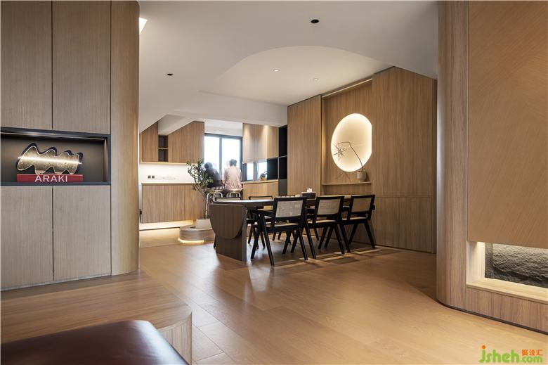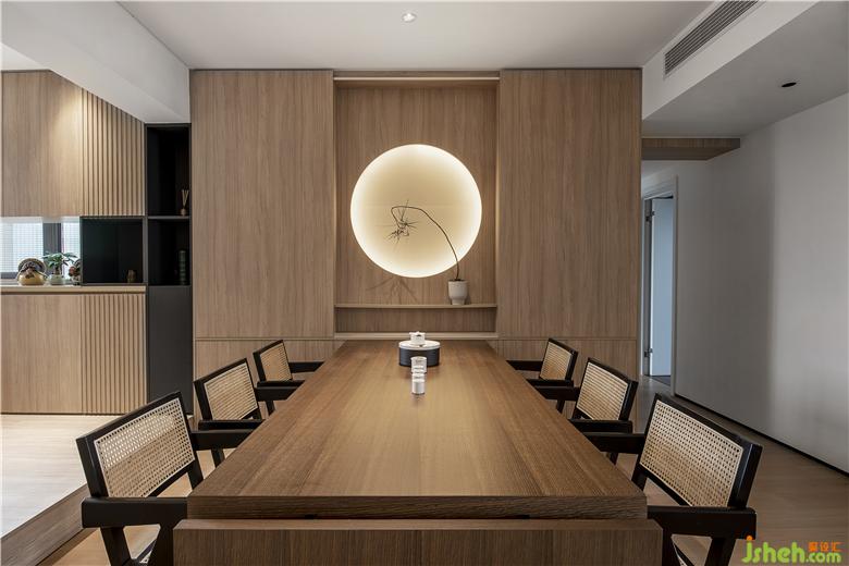 Designers in the pure wood color space, reduce the decorative interference, "a bright moon" is located in the center of the space, square with a circle, light and shadow interspersed with a plant, the simple and elegant layout and wood warmth give people a kind of peace and warmth.