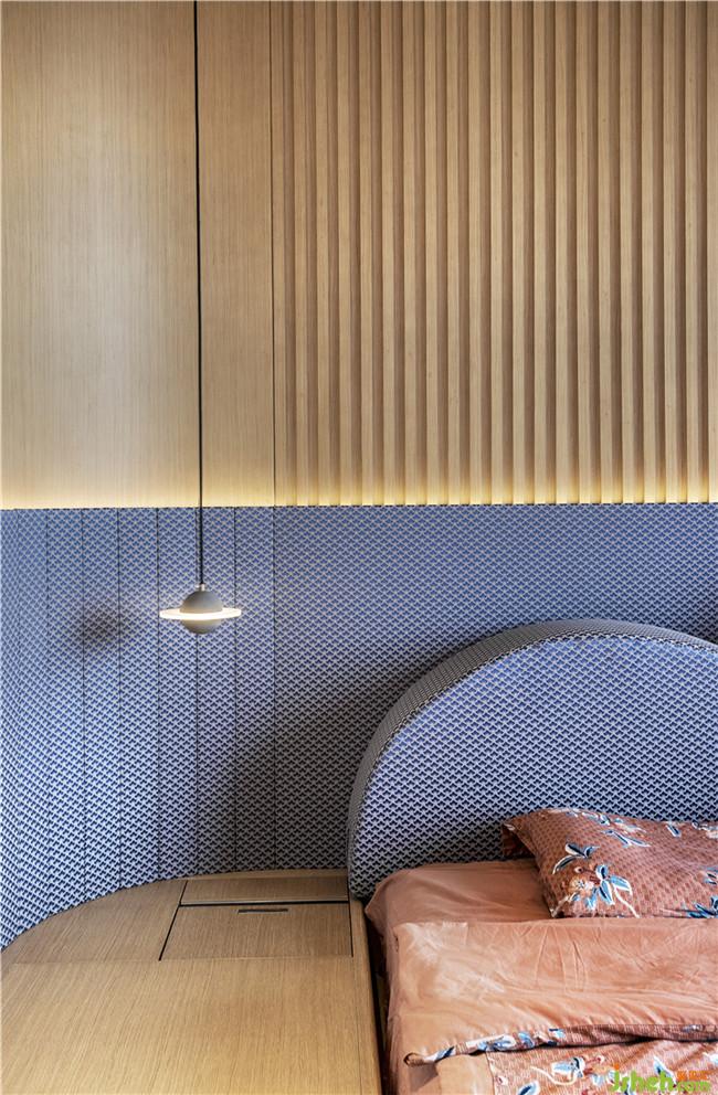 床頭的弧形與拐角處的弧線處理相呼應(yīng),將空間風(fēng)格貫穿始終。