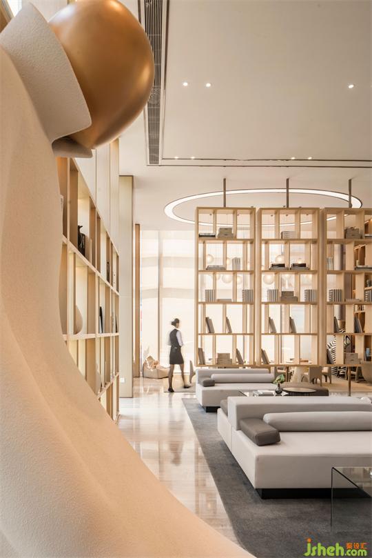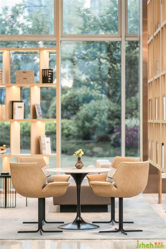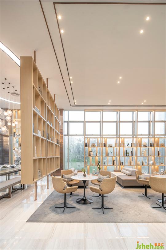 步入大堂開敞有序,對稱的布局,空間層層相疊,木質(zhì)材料和古銅元素結(jié)合,整體空間輕松自然,格調(diào)優(yōu)雅。售樓處整個空間消弱營銷氛圍,更像是一地閑時的好去處。美學(xué)設(shè)計充滿現(xiàn)代時尚感,也更加符合現(xiàn)代人的審美方式。