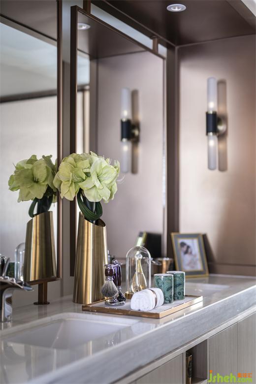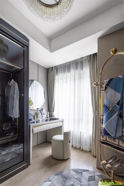 衣帽間格調(diào)同樣溫馨,又是設(shè)計(jì)師一處時(shí)尚之作。時(shí)髦的絲巾、高雅的單鞋、優(yōu)美的鮮花,足見屋主對生活的熱愛和品質(zhì)追求。