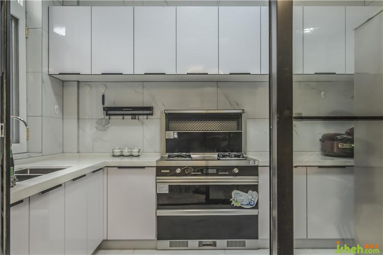 室內(nèi)設(shè)計師把廚房和餐廳相鄰而居,獲得一個寬敞的餐廚空間,并克服了餐廳廚房梁體關(guān)系,通過頂面修飾材質(zhì)的搭配,使整個空間協(xié)調(diào)而舒適。