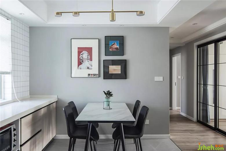 餐廳墻面裝修公司搭配復(fù)古精美的裝飾畫(huà),讓餐廚區(qū)有了別樣的精致感。