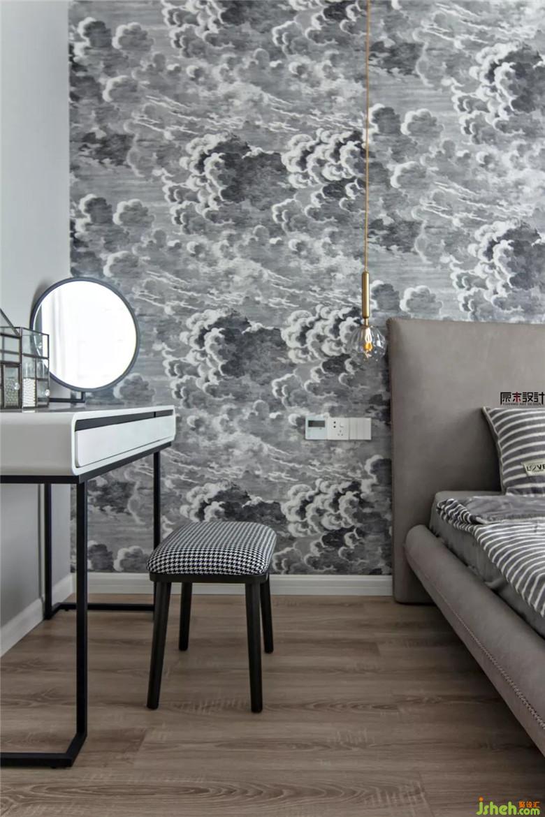 主臥裝修公司采用網(wǎng)紅云墻紙鋪貼增加了臥室的神秘感,搭配上床品的點(diǎn)綴提升了空間層次和質(zhì)感。