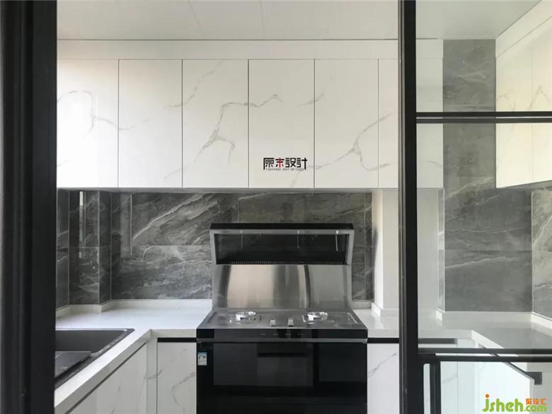 ▲ 當浮光掠過肌理,當炊煙暖暖升起,那內心從未忘卻的情景就在此時。廚房的門板采用了爵士白連紋定制的效果,與客餐廳的地面磚起到了完美的呼應,突顯出了簡約個性的廚房氛圍。