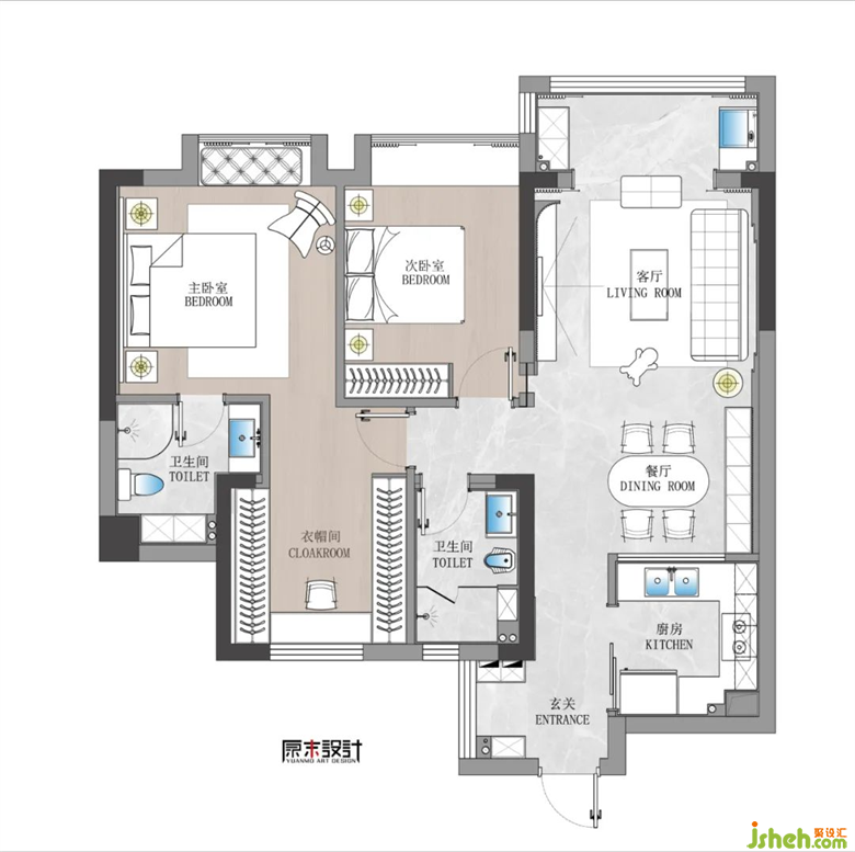 ■玄關:將左側入戶花園改成鞋帽區(qū),增強了玄關功能的實用性,也讓其入戶感受有了滿滿的儀式感。