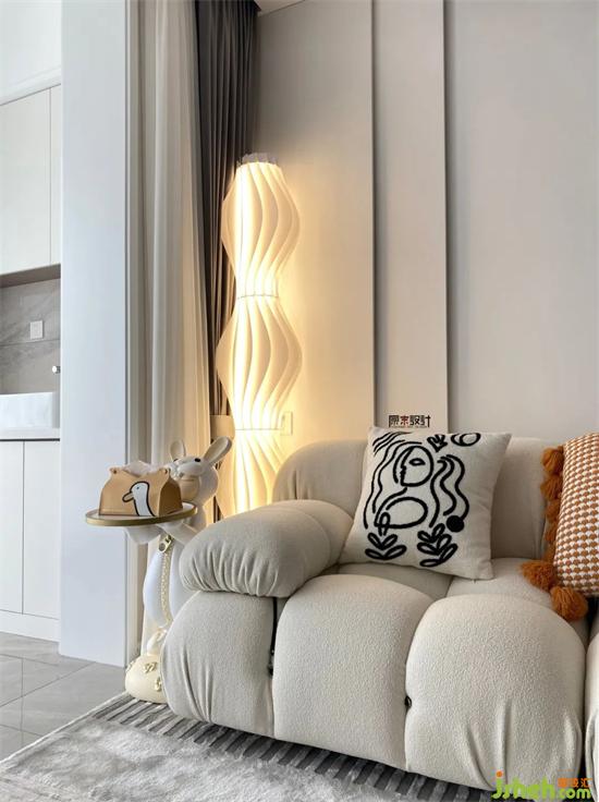 ▲ 沙發(fā)角落的落地燈,家裝設計個性而獨特,自愈且溫暖,相互依偎在這角落,每天看這朝陽和日落。