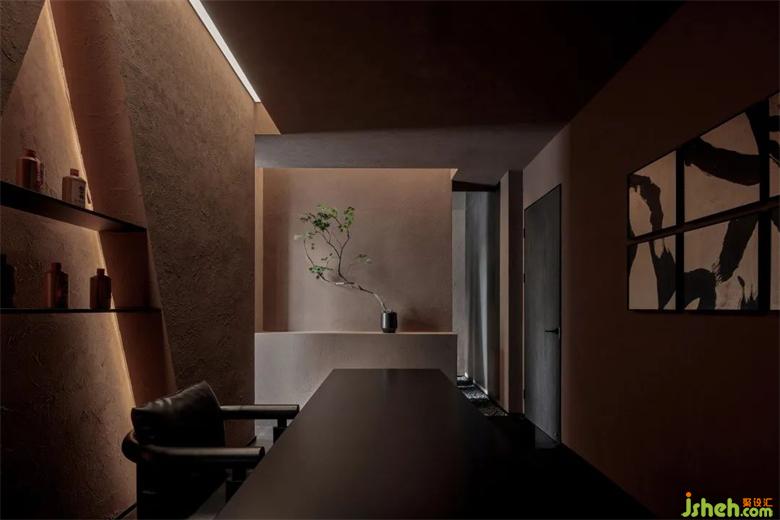入口的端景,是一塊從中間劈開的石塊,述說著盤古開天辟地的傳奇故事。左邊的夯土墻,地面的碎石,似乎帶酒館設(shè)計(jì)我們來到那個(gè)遠(yuǎn)古的時(shí)代,那是文明的起源,人類智慧的開始。
