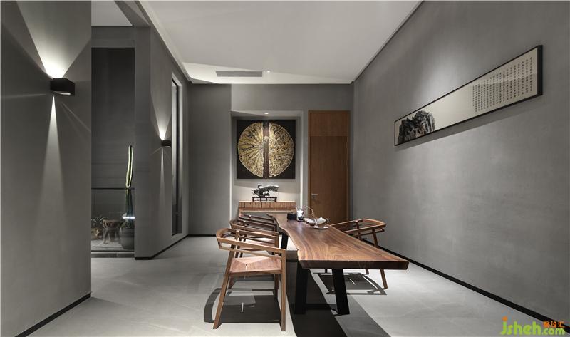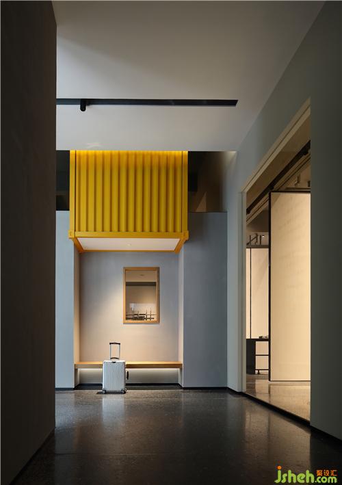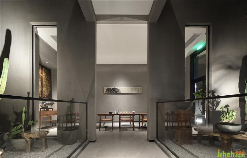 在建筑與室內(nèi)的材質(zhì)運(yùn)用中,精致的巖板,水磨石配以富含自然氣息的原木紋磚、夯土、竹格柵,杭州辦公室設(shè)計(jì)使冷峻利落的建筑形體增添了與人親近的自然氣息。