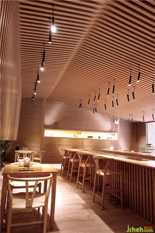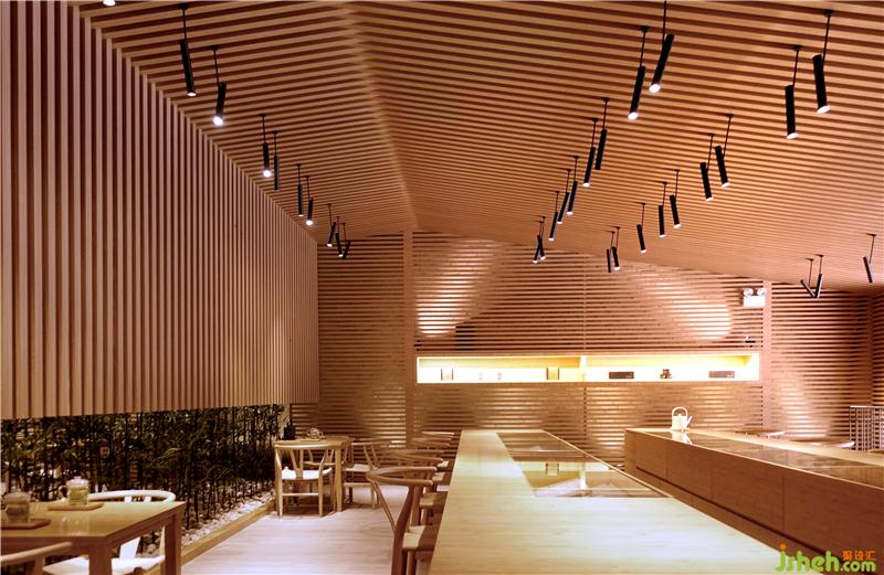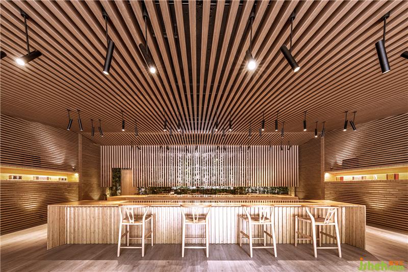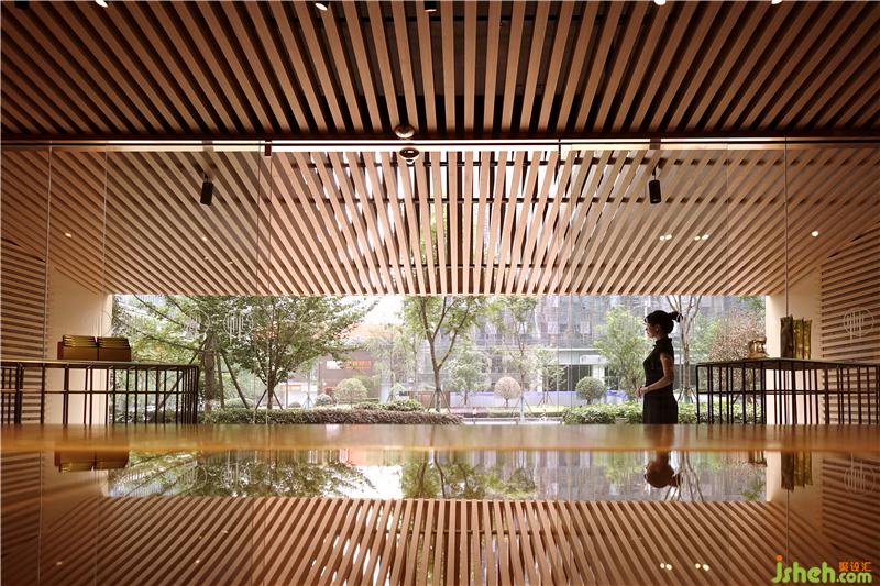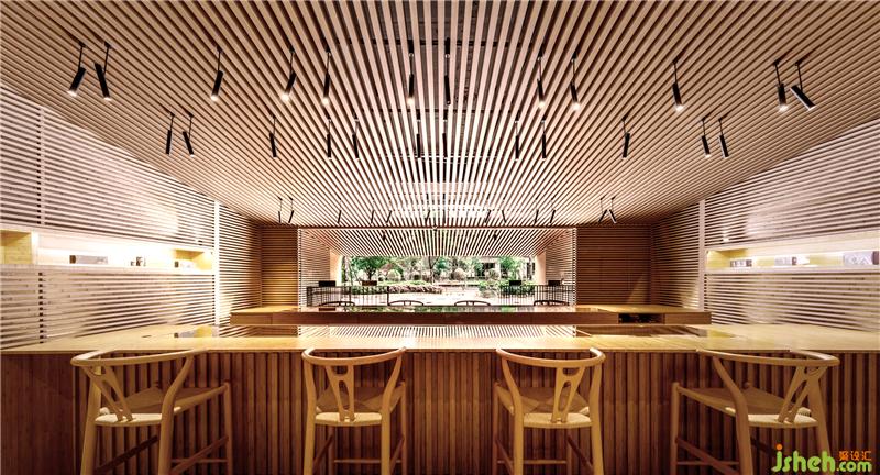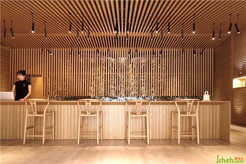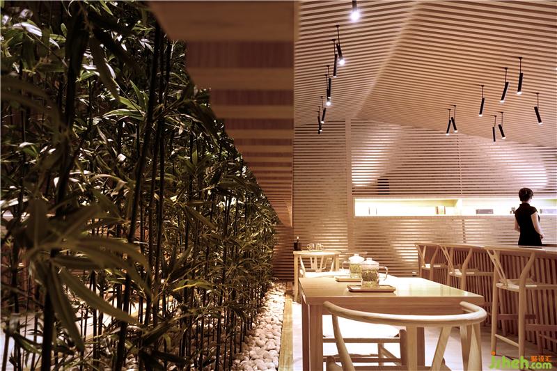 竹葉青的產(chǎn)品種類是精選過的,并不繁雜,因此我們縮小了商品展示空間的比例,而著重在人與人之間的互動。悠閑的生活步調(diào)是大家對成都人的印象之一,另一個印象就是在庭院中喝著用蓋碗杯泡的竹葉青茶。過去十多年,竹葉青在品牌的塑造上并沒有強調(diào)”怎么喝竹葉青茶”這件事,我們現(xiàn)在把它強調(diào)出來,創(chuàng)造喝茶的氛圍。同時我們也把竹子帶入店內(nèi)空間,竹子也是大眾對四川的一個普遍印象;店鋪設(shè)計我們也在竹子格柵的設(shè)計上著墨,將其發(fā)揮得淋漓盡致。店鋪設(shè)計