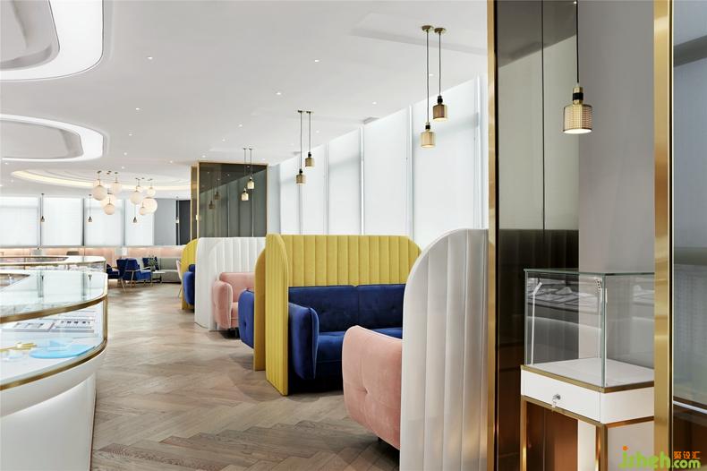 VIP洽談區(qū)的家具則以明黃、寶藍(lán)及煙粉的穿插,營造出一處輕松、明快、愉悅的交流空間。每一件珠寶的背后,都有一個(gè)浪漫的故事。在這樣現(xiàn)代、輕奢、時(shí)尚的空間里,感受琳瑯滿目的奇珠異寶,喝一杯咖啡,任誰都會對珠寶背后的故事好奇不已。