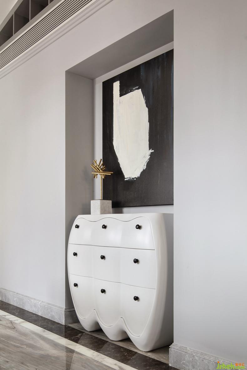 奶白色的柔軟與草間彌生的藝術(shù)品《南瓜》,讓臥室自然而然成為一幅純粹的藝術(shù)作品,干凈透亮的視覺效果,將極簡主義美學(xué)發(fā)揮到完美。