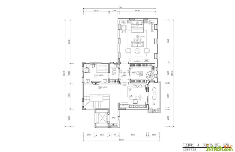 主臥室對(duì)稱式構(gòu)圖與人字形天花設(shè)計(jì),體現(xiàn)出了東方的平衡與穩(wěn)定之美,大面積低飽和度的米灰色墻布,柔和的燈光,儒雅現(xiàn)代的家具形態(tài),烘托出安靜和諧的氛圍。