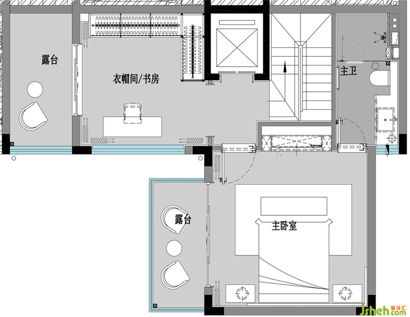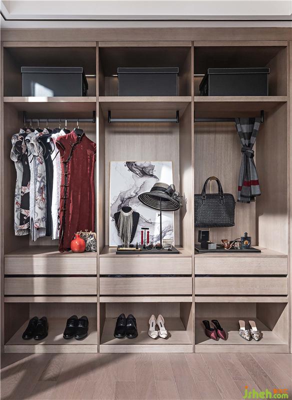 自然光的光澤度灑落在空間中。在織品、透紗、簾幕、衣飾擺放間,飄散著具溫度的質(zhì)感,輕撫流動于質(zhì)材間。更衣室以開放格局規(guī)劃,一目了然,在空間感與使用感中舒適配搭得宜。