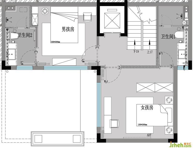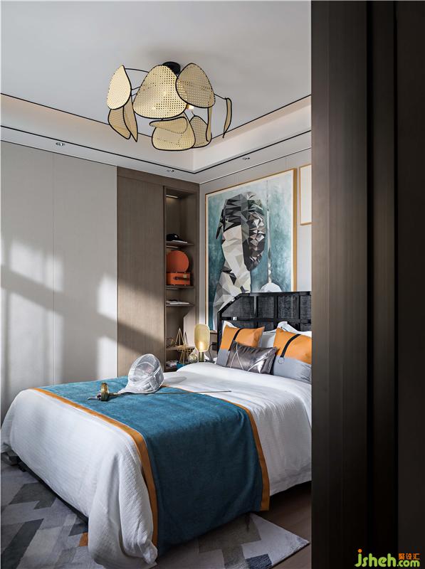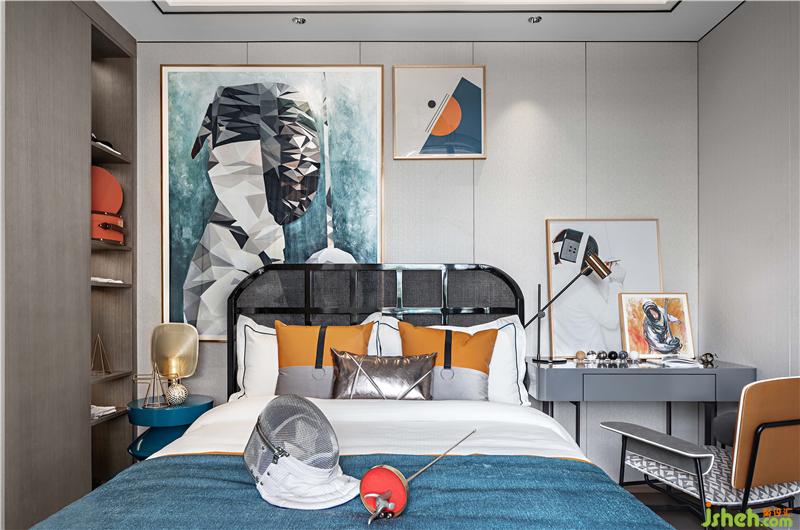 男孩房以騎士精神作為設(shè)計主題??臻g氛圍將專屬于男孩的鮮明氣氛表露無遺。在色彩對比與空間動感的融合上,風(fēng)格顯出強(qiáng)烈性格。畫作里幾何構(gòu)成塊面對比抽象圖勾勒出屬于男孩的明快節(jié)奏,簡約軟裝跳著愛馬仕橘與湖水藍(lán),強(qiáng)烈的色相顯得精神抖擻。