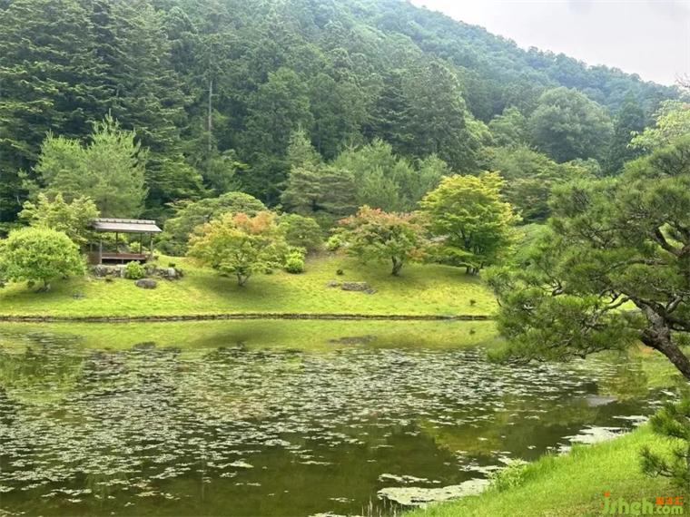 綜觀修學院離宮,遠離市塵卻可遙望街市,離而不隔,若即若離。本為山地,曲水瀑布最宜,卻強為廣大水池,堆土島構橋梁,工程浩大。但堤下以植籬掩蓋,堤上寬堤如浜,顯得親切自然。最妙處為借景,在鄰云亭、千歲橋、西浜各處都可借到山下、市區(qū)和遠山的景觀。