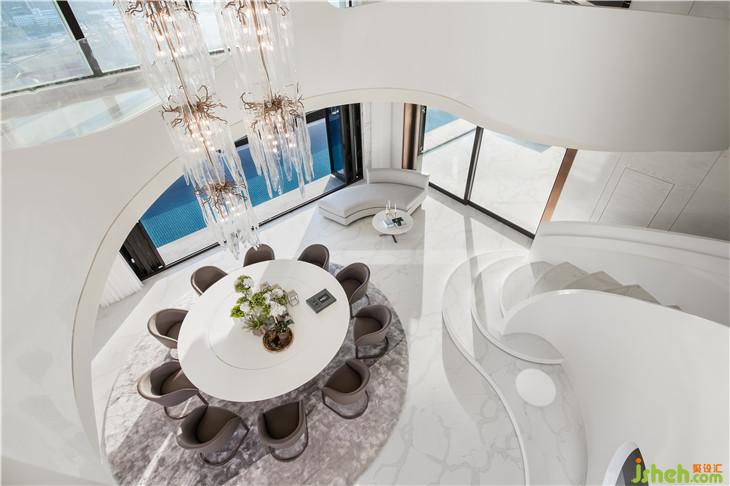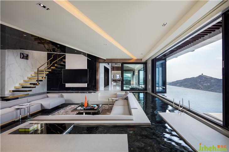 近來云水間的案例便是這些理念的真實(shí)的寫照,他說道:“我們其實(shí)就是在創(chuàng)造情境創(chuàng)造生活方式,我們就不只是形式。”當(dāng)今有很多設(shè)計(jì)從業(yè)者認(rèn)為加入一些圈狀或線條類的就是有設(shè)計(jì),而真正的室內(nèi)設(shè)計(jì)師應(yīng)該要清晰的創(chuàng)造出情境。因此他以及設(shè)計(jì)團(tuán)隊(duì)從一開始的無邊際泳池,擴(kuò)大到客廳,再讓水漫到擴(kuò)大到整個(gè)空間,當(dāng)客戶進(jìn)入到這個(gè)客廳時(shí)你會(huì)覺得自己仿佛是一葉扁舟,徜徉在整個(gè)海洋中,整個(gè)氛圍就被很自然的展現(xiàn)出。