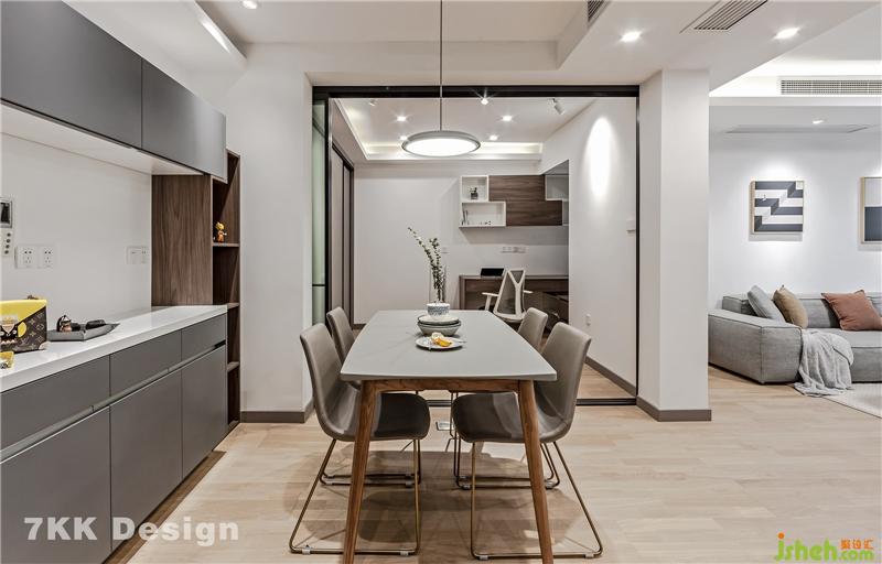 餐廳的亮點就是大面積滑軌移門,它的隔音效果非常棒,后面的私人的辦公地方,只要覺得外面吵就可以拉上門,不管是在移門的厚度上還是在定向滑動,幾乎沒有噪聲。旁邊的收納柜,平時放置一些物品以便出門方便拿取上海室內(nèi)設(shè)計師。