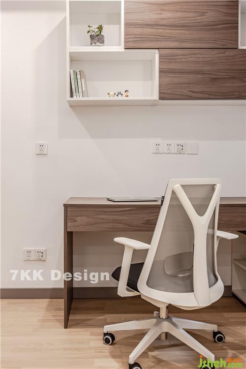 在這30㎡的辦公區(qū)域,在搭配木飾面地板,讓人安靜工作,工作累了可以看著窗外,旁邊的墻面是鏤空打造了一個窗臺,保持通風是主要。此區(qū)域還可以切換成健身&瑜伽區(qū)域。同時我們給業(yè)主增加了房間的第二個心臟(衣帽間),可以把整個客廳的雜物放置在這個衣帽間里,不管是健身器材還是換洗下來的被褥枕頭套都可以放在里面上海室內(nèi)設(shè)計師。
