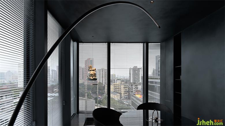 入口南窗這邊是以書柜、長凳、置物架、水平窗為高低布局的室內(nèi)小景;而鄰近美院校園一側(cè)的落地玻璃,則以更開放的方式將綠植、陽光引進室內(nèi),形成視覺延伸。