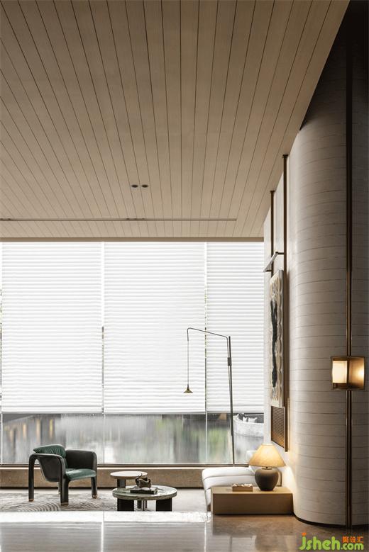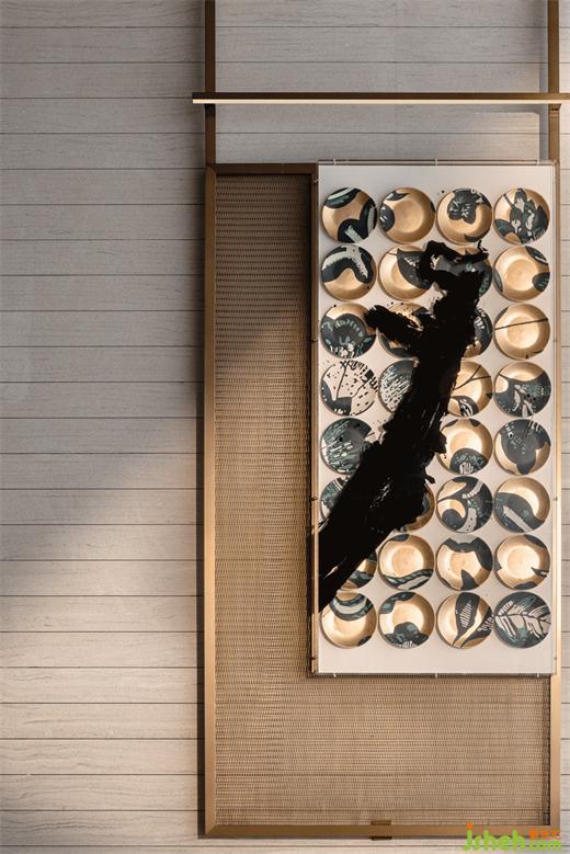 水紋形態(tài)壁燈、錦鯉裝置、陶瓷水墨藝術、窯瓷茶器等細節(jié)與藝術陳列,成都營銷中心設計將傳統(tǒng)文化與現(xiàn)代生活方式相融合,從不同的維度上詮釋著錦水對日常與藝術的滋養(yǎng),喚醒城市歷史文脈,在地域人文景觀的光譜里,為項目場景注入城市的靈魂。