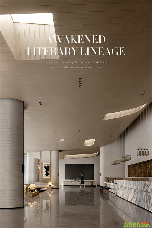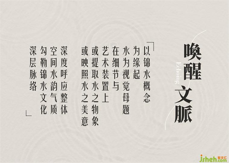 整個項目,以錦水的概念為緣起。水作為視覺的母題,在細節(jié)與藝術裝置上,或提取水之物象,或映照水之美意,深度呼應整體空間的水韻氣質(zhì),勾勒錦水文化的深層脈絡。