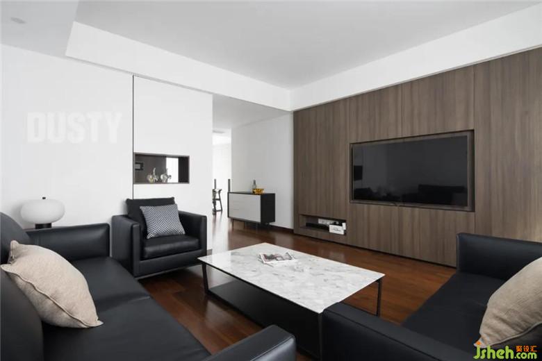 皮質(zhì)的黑色沙發(fā),看似硬朗卻十分的柔軟,