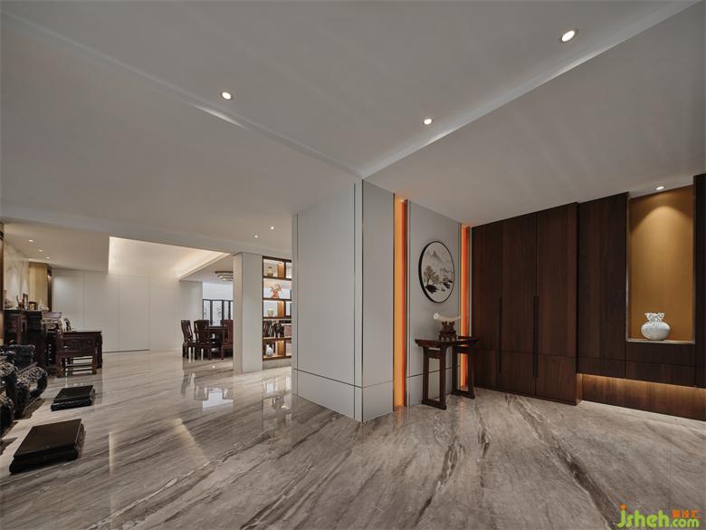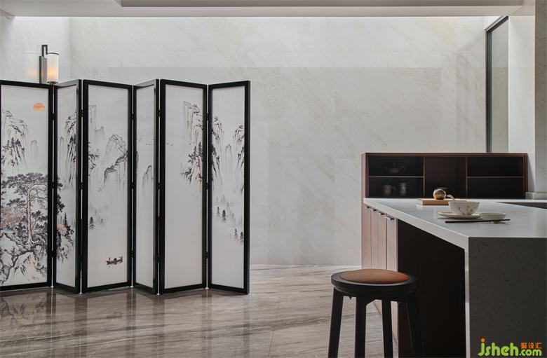 別墅裝修采光天井下面擺設(shè)屏風(fēng)隔斷