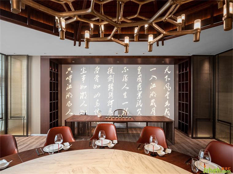 The way to be broad-minded may hidden in the world of mortals,which is the Taoist advocate ofgoing into the society. Inspired by this idea, the designer puts into clever thought on space design. The lighting in the banquet area is designed as hexagonal pavilions, so that the guests can feel the elegant taste of the literati and enjoy the pleasure and passion of drinking and singing.