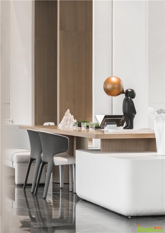 在極簡(jiǎn)的布藝沙發(fā)、溫潤(rùn)的木藝列架、抽象線條的編織地毯之間,構(gòu)建起一個(gè)可安靜交流的功能空間,以豐富而實(shí)用的場(chǎng)景呼應(yīng)空間的復(fù)合態(tài)。
