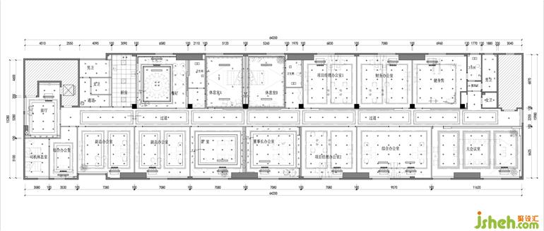 在細(xì)密有致的排列中綴以燈帶,使光影的明暗與線條的層序性形成對(duì)比。商務(wù)辦公樓設(shè)計(jì)表達(dá)個(gè)性化的室內(nèi)空間,突顯會(huì)所不拘一格的優(yōu)雅。