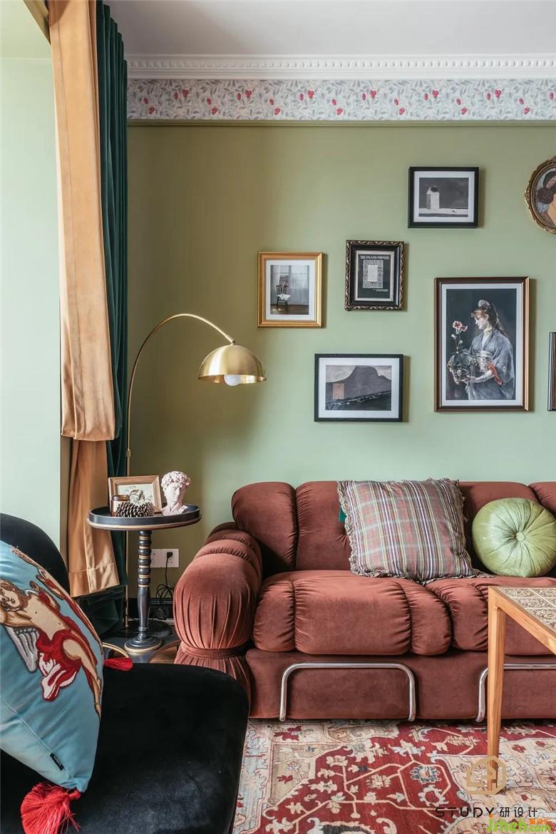 藤編、黃銅、絨緞,還有頂面一圈野草莓花枝纏繞,這便是整個(gè)客餐廳的自然氣息,縈繞著治愈又復(fù)古的詩(shī)意,就這樣靜靜的呆在一起,無聊或打鬧,各自忙碌或者彼此擁抱,這小小的空間自由也浪漫。