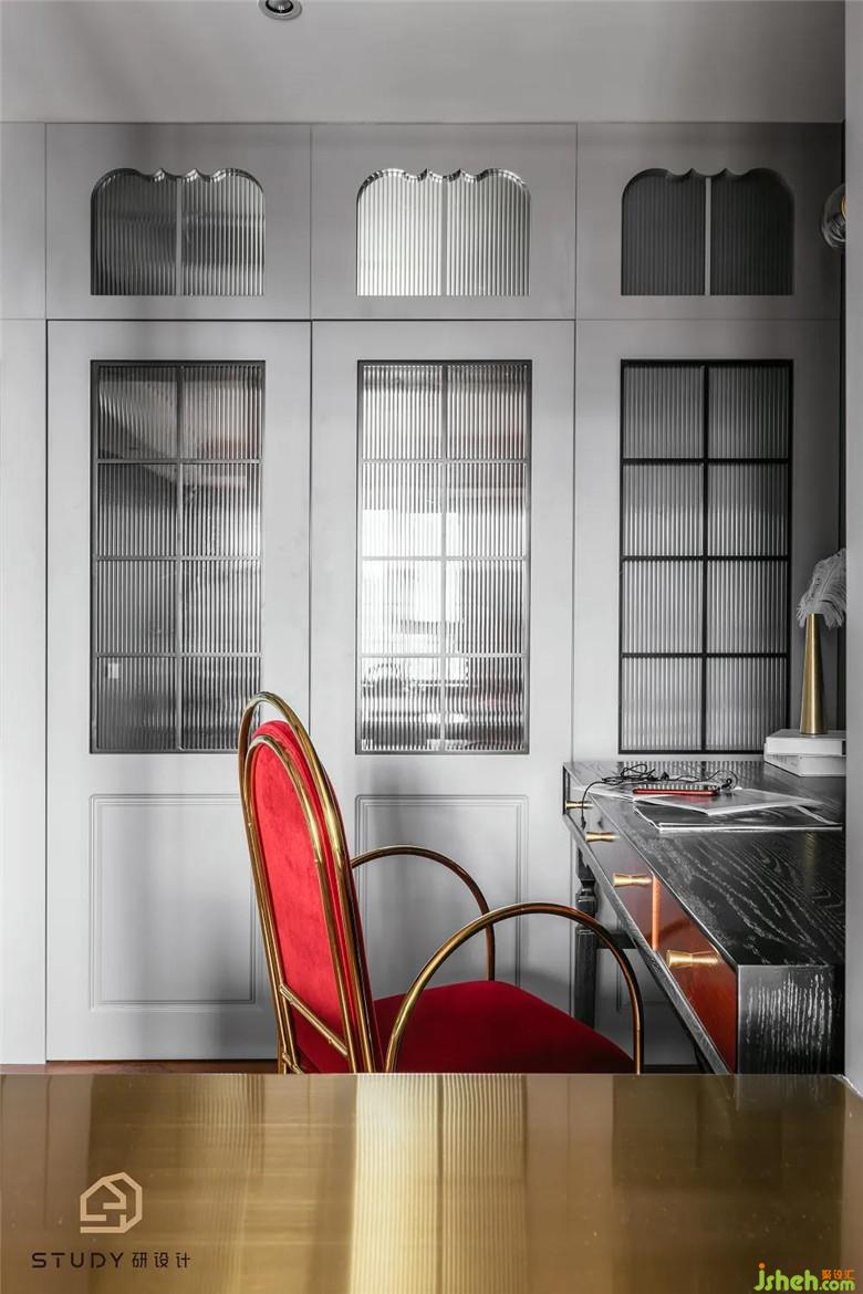 特別定制的衣帽間雙開(kāi)門,線條圓潤(rùn)復(fù)古,