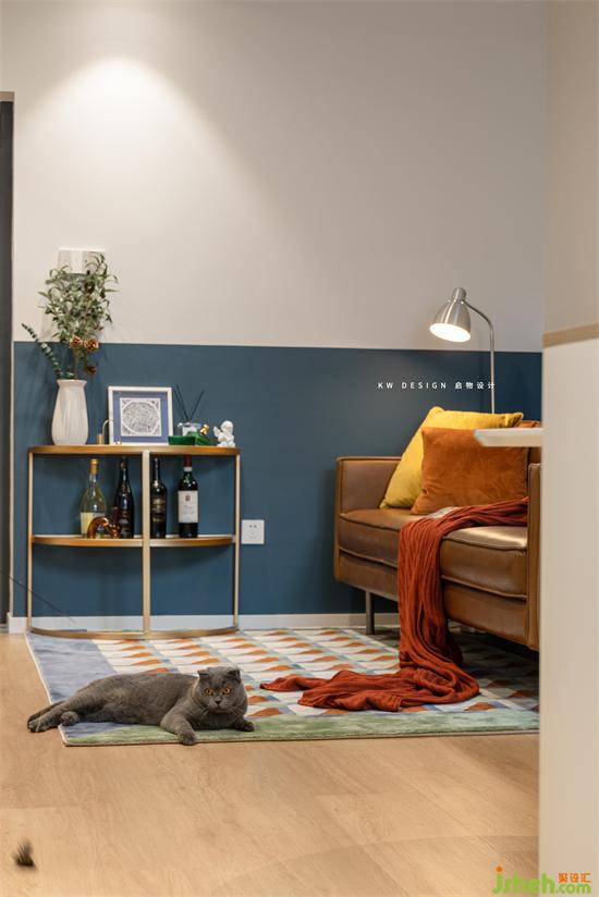 全屋地板加持,靠著沙發(fā)坐地毯,靠著地毯躺地板,人和貓咪都能找到自己的獨有方式放松身心。