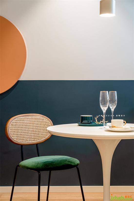 圓桌中心、吊燈中心、橫梁中心規(guī)劃在一個(gè)點(diǎn)上,有秩序的生活總是更舒心的,不是嗎?