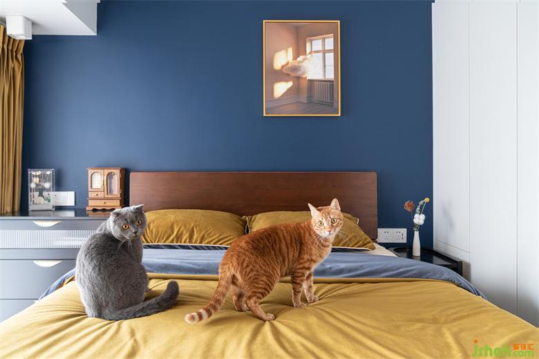 蔚藍(lán)色的涂色從客廳蔓延到了臥室,云朵從窗戶鉆進(jìn)屋里被夕陽(yáng)定格在墻上,美好想象被阿蘇搬進(jìn)了臥室。