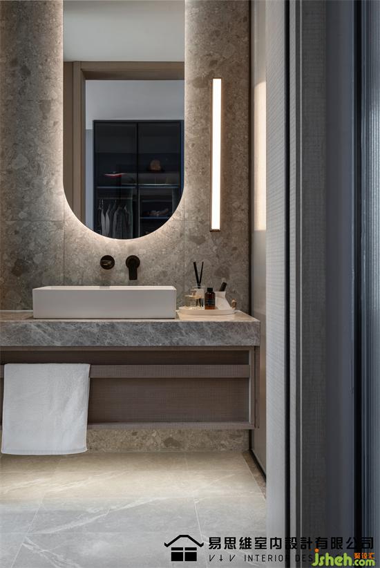 空間利用現(xiàn)下流行的墻面造型將視覺的注意力轉(zhuǎn)移在具有豐富圖案的石材紋理上,肌理表達(dá)出硬朗和干練的視覺,佛山家裝設(shè)計(jì)配合灰色調(diào)的床品、飄窗墊,傳達(dá)出穩(wěn)定安靜的情緒。